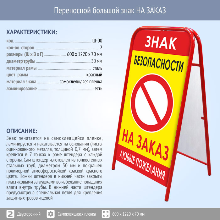 Переносной большой знак НА ЗАКАЗ (двусторонний, самоклеящаяся пленка) в Альметьевске купить