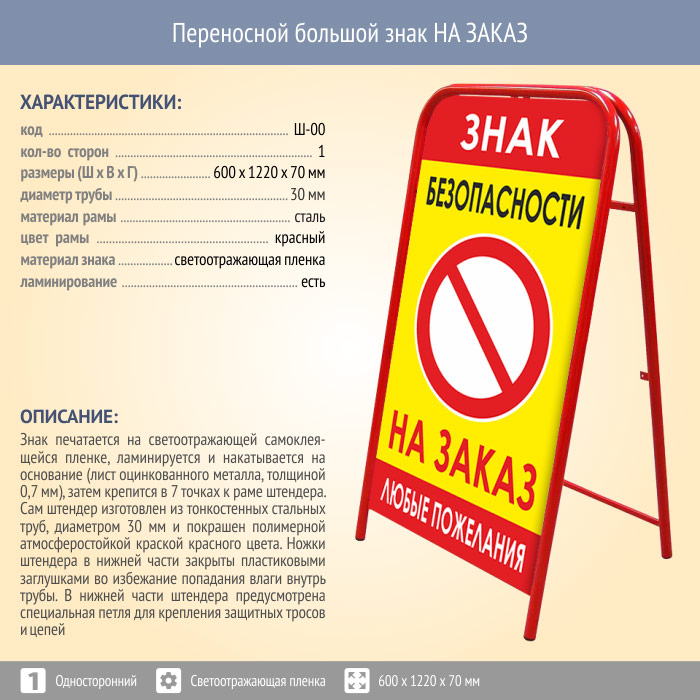Переносной большой знак НА ЗАКАЗ (односторонний, светоотражающая пленка) в Альметьевске купить
