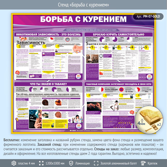 Стенд «Борьба с курением» (PM-07-GOLD) в Альметьевске купить