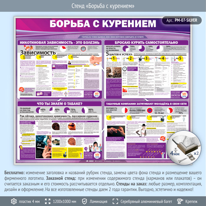 Стенд «Борьба с курением» (PM-07-SILVER) в Альметьевске купить