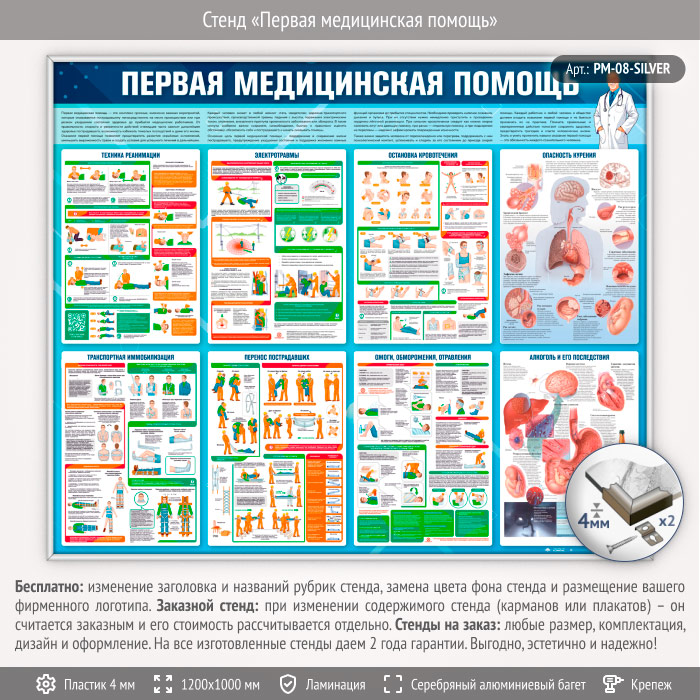 Стенд «Первая медицинская помощь» (PM-08-SILVER) в Альметьевске купить