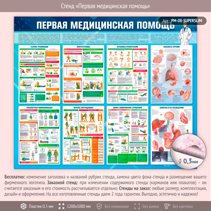 Стенд «Первая медицинская помощь» (PM-08-SUPERSLIM) в Альметьевске купить