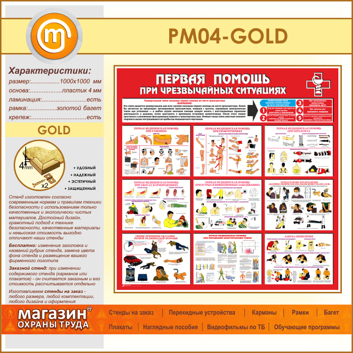 Стенд «Первая помощь при чрезвычайных ситуациях» (PM-04-GOLD) в Альметьевске купить