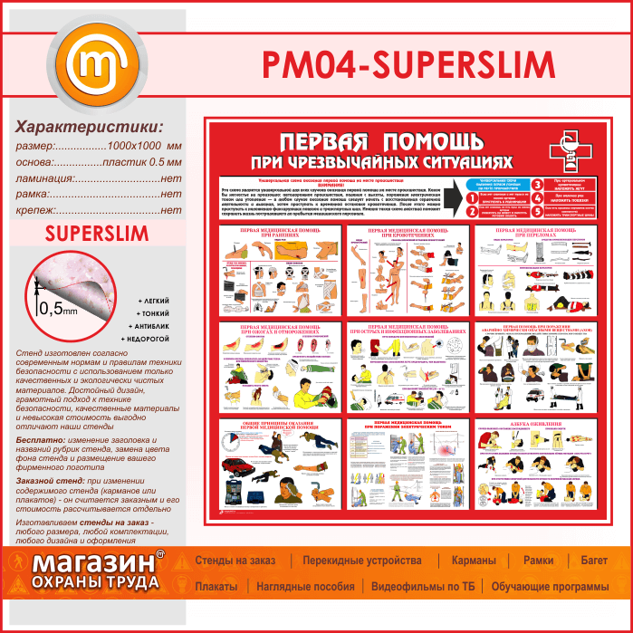 Стенд «Первая помощь при чрезвычайных ситуациях» (PM-04-SUPERSLIM) в Альметьевске купить