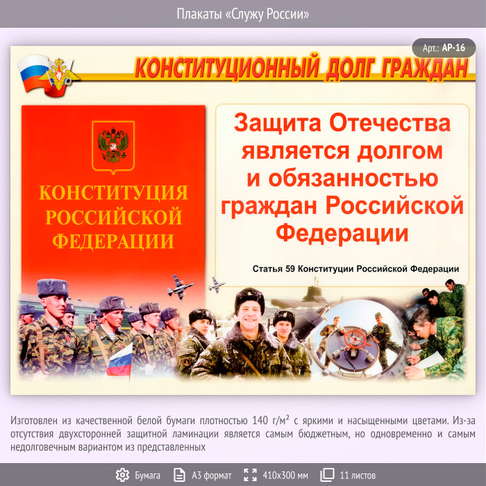 Плакаты «Служу России» (АР-16, бумага, А3, 11 листов) в Альметьевске купить