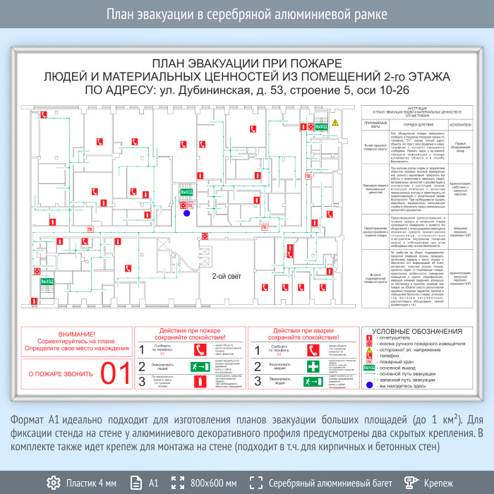 План эвакуации в серебряной алюминиевой рамке (А1 формат) в Альметьевске купить