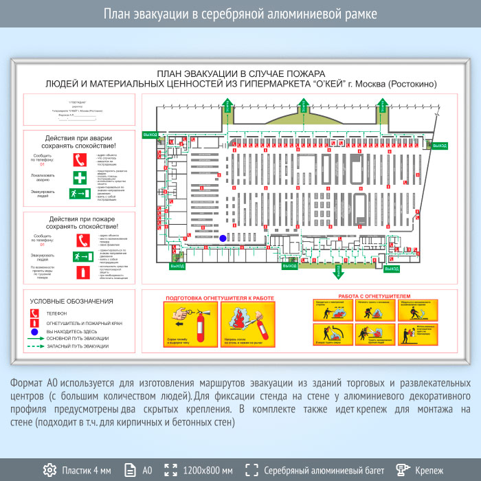 План эвакуации в серебряной алюминиевой рамке (А0 формат) в Альметьевске купить