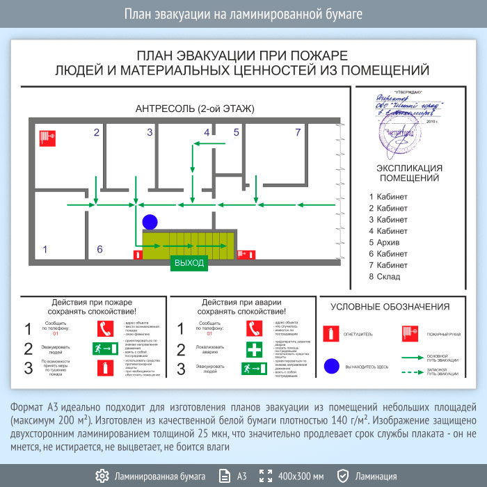 План эвакуации на ламинированной бумаге (А3 формат) в Альметьевске купить
