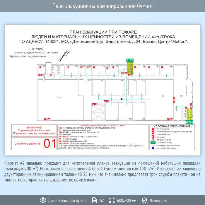 План эвакуации на ламинированной бумаге (А2 формат) в Альметьевске купить