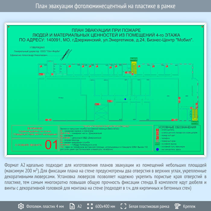 План эвакуации фотолюминесцентный на пластике в рамке (А2 формат) в Альметьевске купить