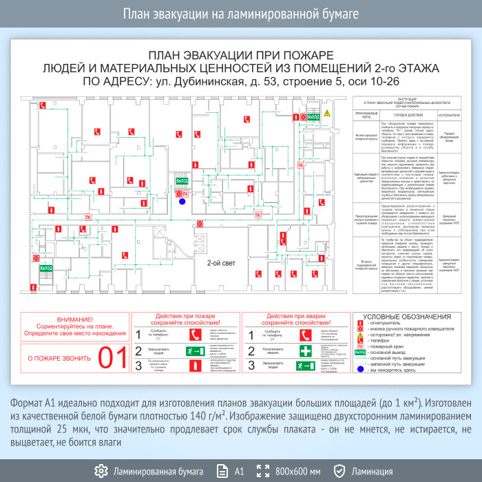 План эвакуации на ламинированной бумаге (А1 формат) в Альметьевске купить