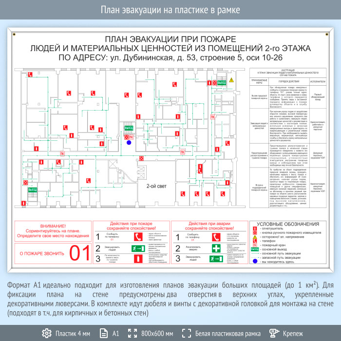 План эвакуации на пластике в рамке (А1 формат) в Альметьевске купить