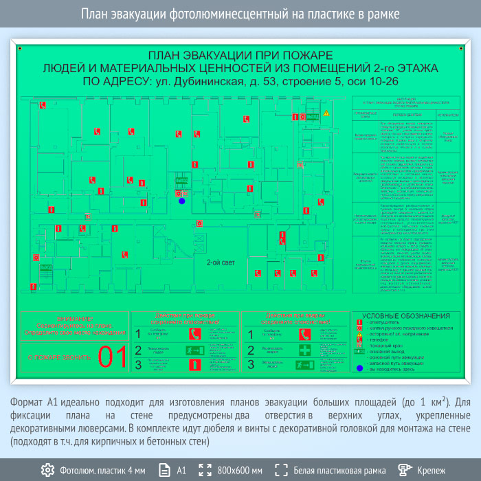 План эвакуации фотолюминесцентный на пластике в рамке (А1 формат) в Альметьевске купить
