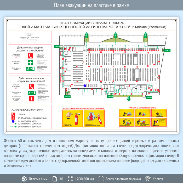 План эвакуации на пластике в рамке (А0 формат) в Альметьевске купить