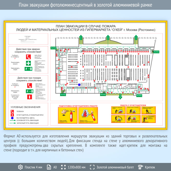План эвакуации в золотой алюминиевой рамке (А0 формат) в Альметьевске купить