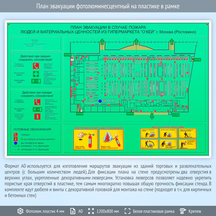 План эвакуации фотолюминесцентный на пластике в рамке (А0 формат) в Альметьевске купить