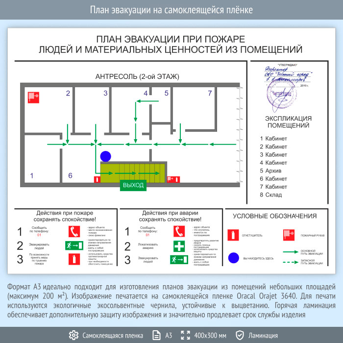 План эвакуации на самоклеящейся плёнке (А3 формат) в Альметьевске купить