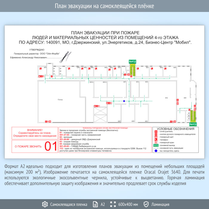 План эвакуации на самоклеящейся плёнке (А2 формат) в Альметьевске купить