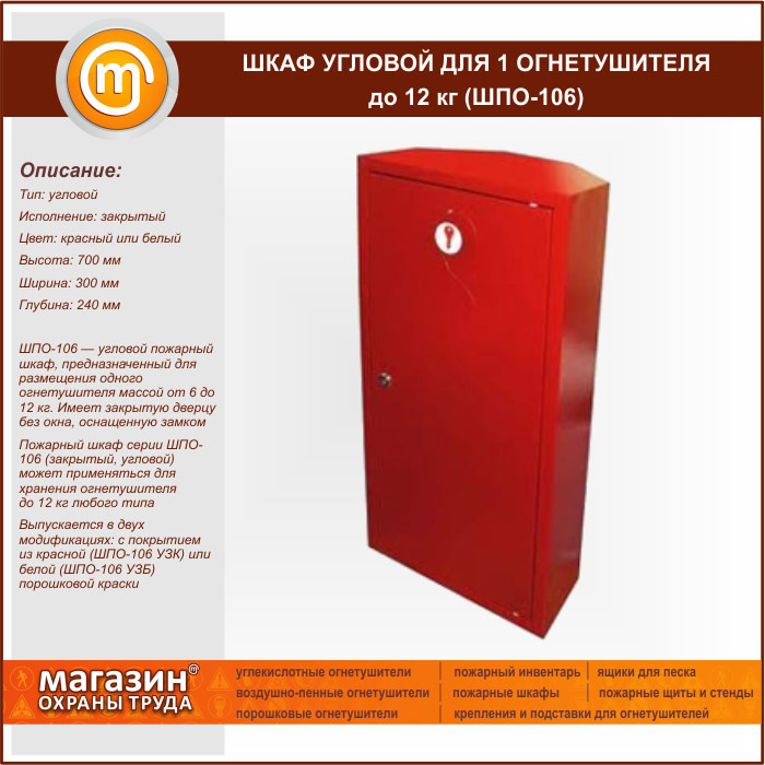 Шкаф пожарный ШПО-106 угловой для 1 огнетушителя до 12 кг в Альметьевске купить