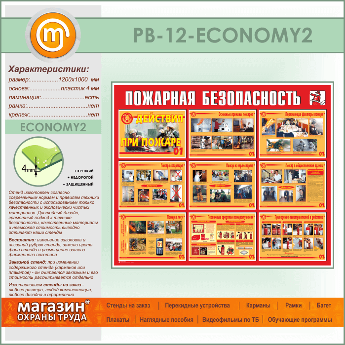Стенд «Пожарная безопасность. Действия при пожаре» (PB-12-ECONOMY2) в Альметьевске купить