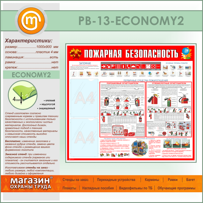 Стенд «Пожарная безопасность» с 2 карманами (PB-13-ECONOMY2) в Альметьевске купить