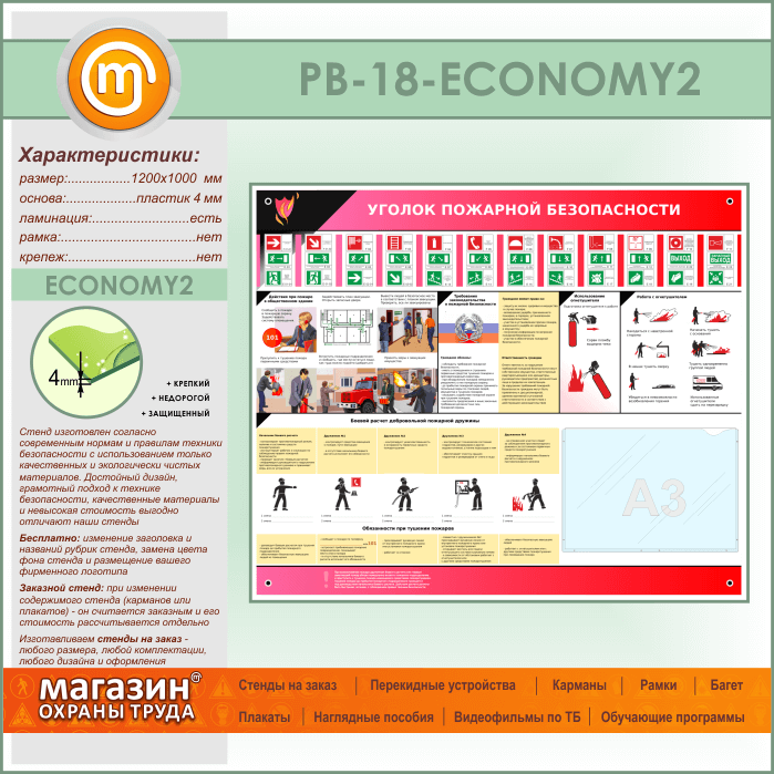 Стенд «Уголок пожарной безопасности» с карманом А3 формата (PB-18-ECONOMY2) в Альметьевске купить