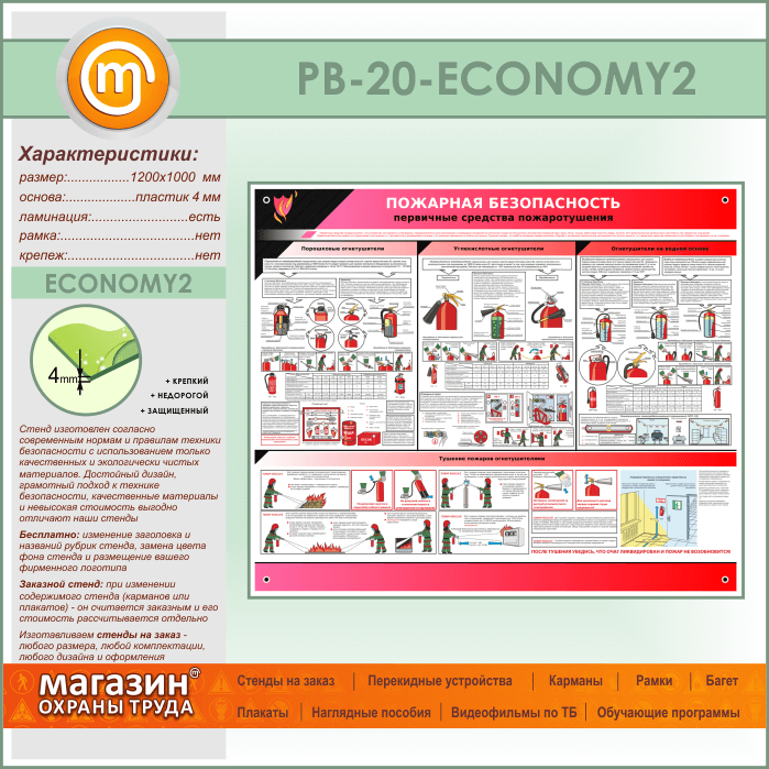 Стенд «Пожарная безопасность. Первичные средства пожаротушения» (PB-20-ECONOMY2) в Альметьевске купить