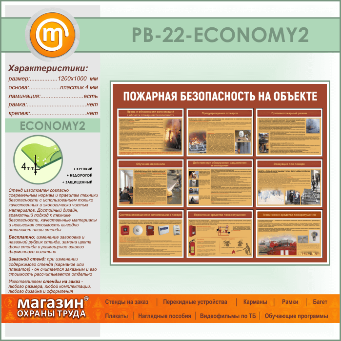 Стенд «Пожарная безопасность на объекте» (PB-22-ECONOMY2) в Альметьевске купить