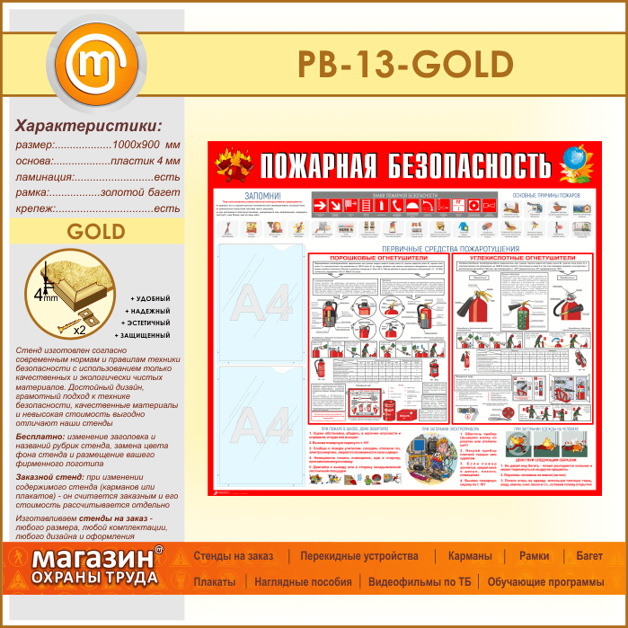 Стенд «Пожарная безопасность» с 2 карманами (PB-13-GOLD) в Альметьевске купить