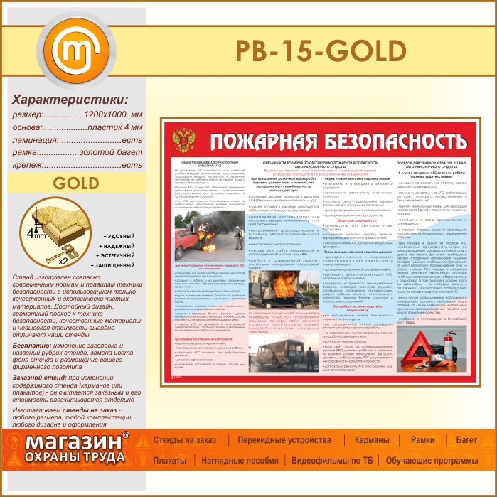 Стенд «Пожарная безопасность на автотранспорте» (PB-15-GOLD) в Альметьевске купить