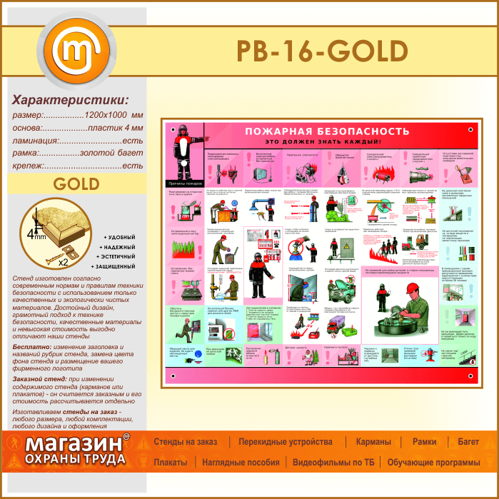 Стенд «Пожарная безопасность. Это должен знать каждый» (PB-16-GOLD) в Альметьевске купить