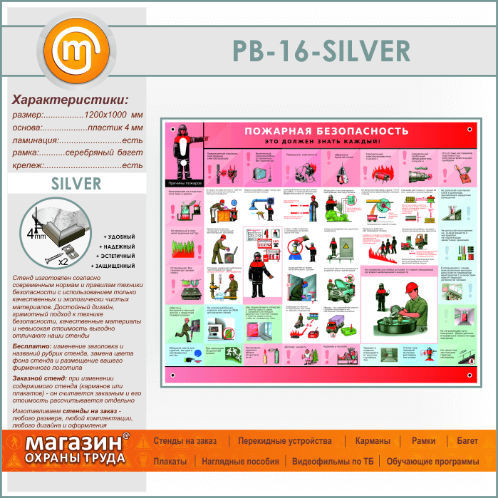 Стенд «Пожарная безопасность. Это должен знать каждый» (PB-16-SILVER) в Альметьевске купить