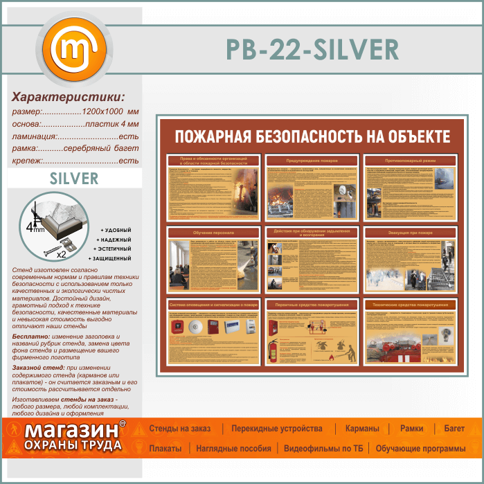 Стенд «Пожарная безопасность на объекте» (PB-22-SILVER) в Альметьевске купить