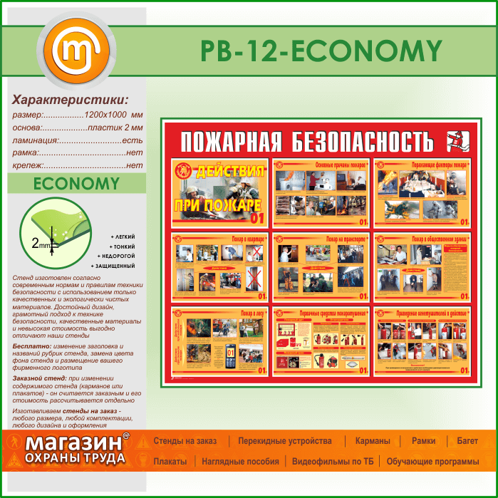 Стенд «Пожарная безопасность. Действия при пожаре» (PB-12-ECONOMY) в Альметьевске купить