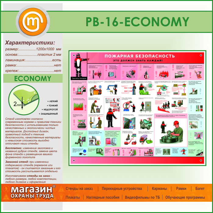 Стенд «Пожарная безопасность. Это должен знать каждый» (PB-16-ECONOMY) в Альметьевске купить