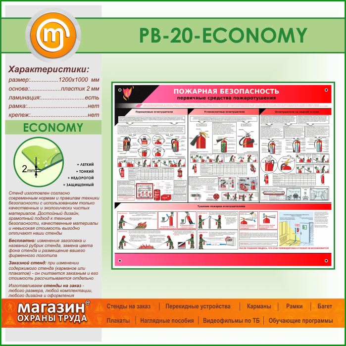 Стенд «Пожарная безопасность. Первичные средства пожаротушения» (PB-20-ECONOMY) в Альметьевске купить