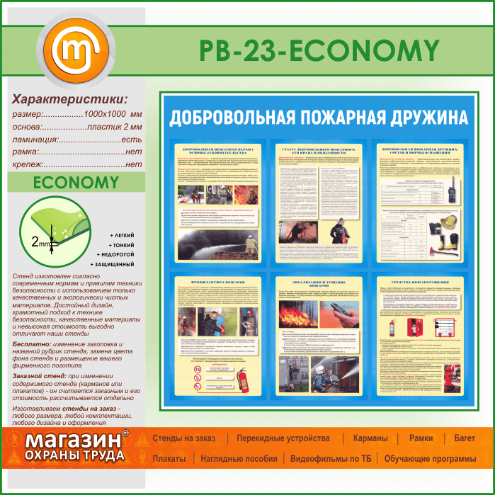 Стенд «Добровольная пожарная дружина» (PB-23-ECONOMY) в Альметьевске купить