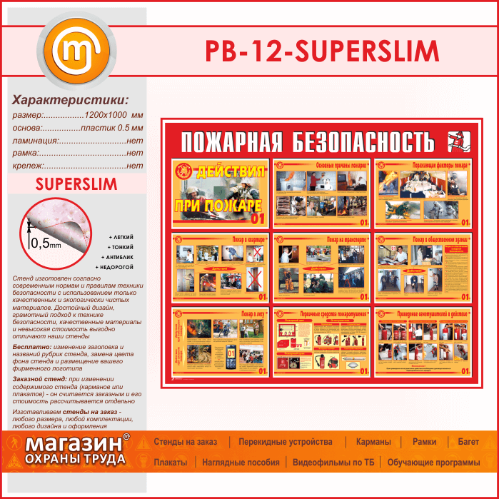 Стенд «Пожарная безопасность. Действия при пожаре» (PB-12-SUPERSLIM) в Альметьевске купить