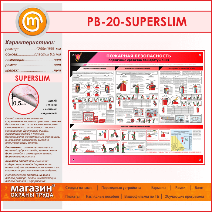 Стенд «Пожарная безопасность. Первичные средства пожаротушения» (PB-20-SUPERSLIM) в Альметьевске купить