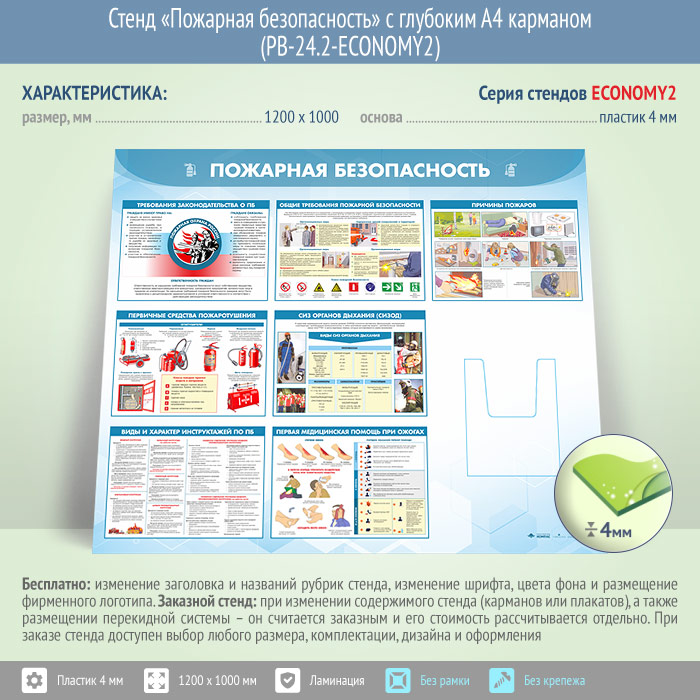 Стенд «Пожарная безопасность» с глубоким А4 карманом (PB-24.2-ECONOMY2) в Альметьевске купить