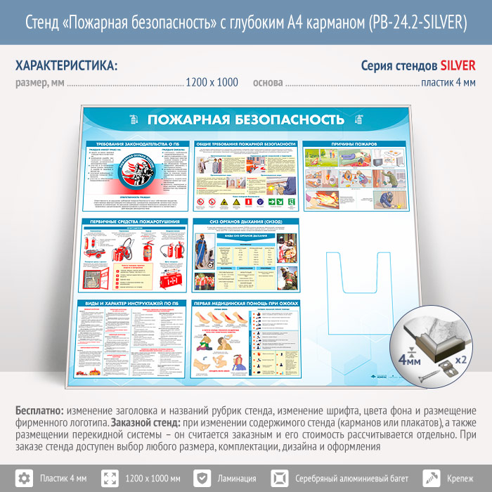Стенд «Пожарная безопасность» с глубоким А4 карманом (PB-24.2-SILVER) в Альметьевске купить