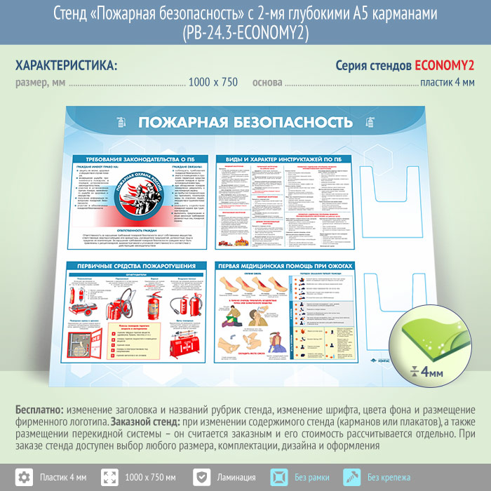 Стенд «Пожарная безопасность» с 2-мя глубокими А5 карманами (PB-24.3-ECONOMY2) в Альметьевске купить