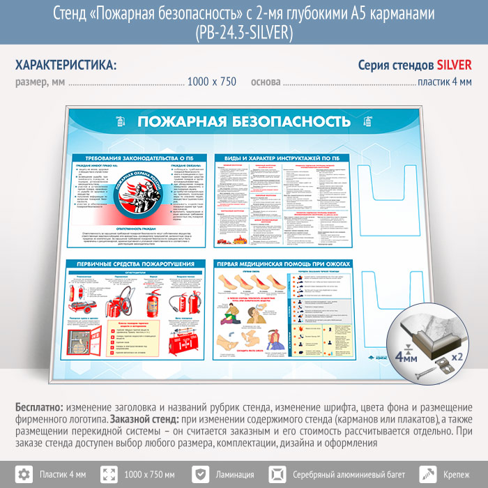 Стенд «Пожарная безопасность» с 2-мя глубокими А5 карманами (PB-24.3-SILVER) в Альметьевске купить