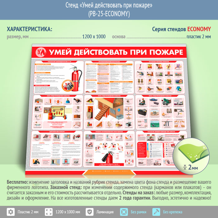 Стенд «Умей действовать при пожаре» (PB-25-ECONOMY) в Альметьевске купить