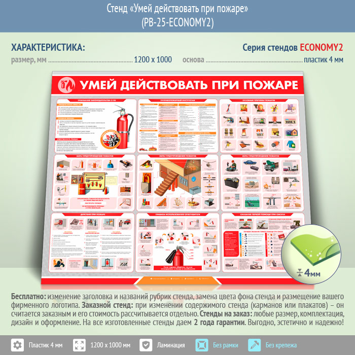 Стенд «Умей действовать при пожаре» (PB-25-ECONOMY2) в Альметьевске купить