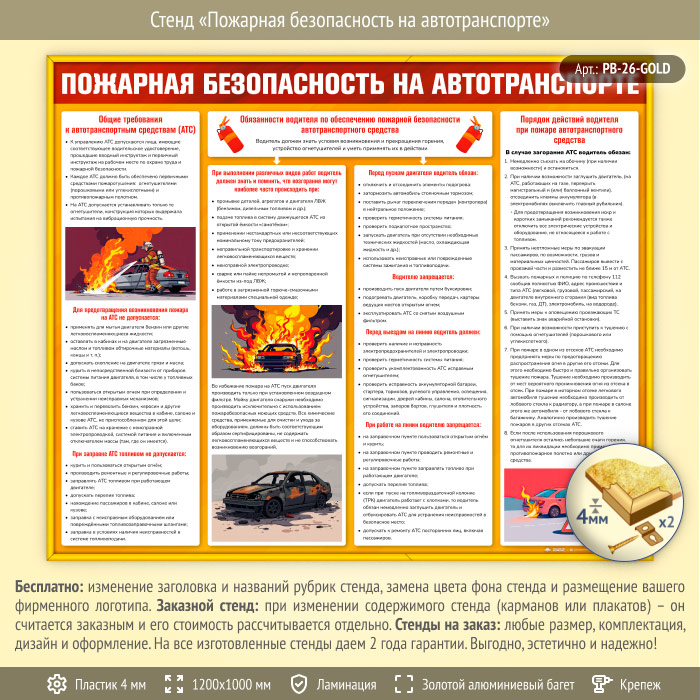 Стенд «Пожарная безопасность на автотранспорте» (PB-26-GOLD) в Альметьевске купить