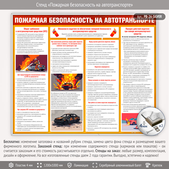 Стенд «Пожарная безопасность на автотранспорте» (PB-26-SILVER) в Альметьевске купить