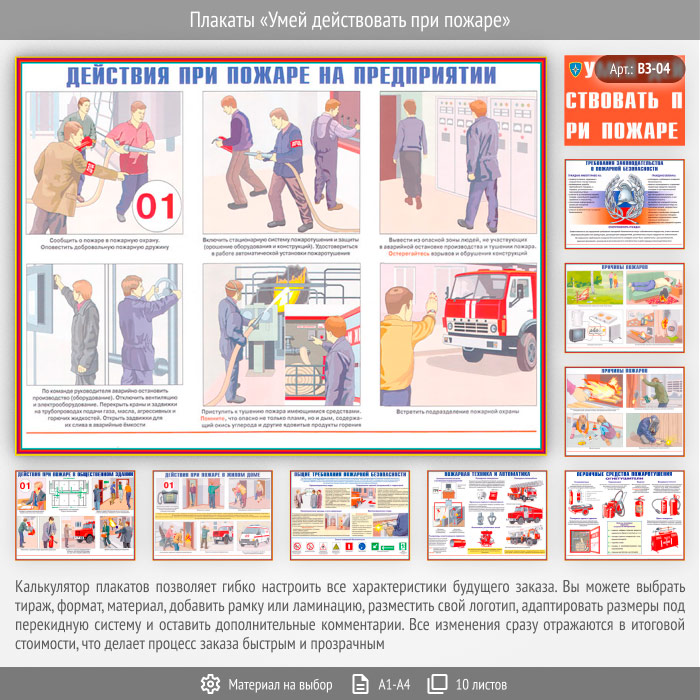 Плакаты «Умей действовать при пожаре» (ВЗ-04, 10 листов) в Альметьевске купить