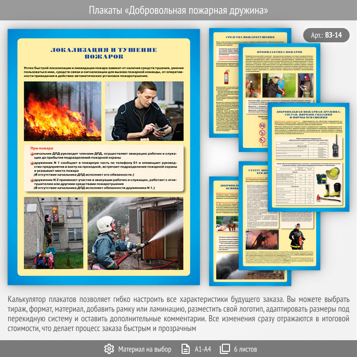 Плакаты «Добровольная пожарная дружина» (ВЗ-14, 6 листов) в Альметьевске купить
