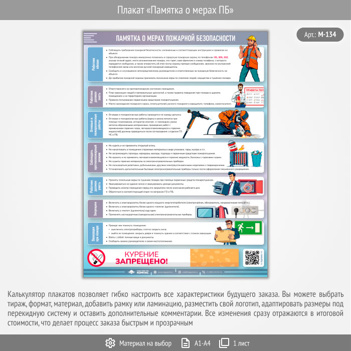 Плакат «Памятка о мерах ПБ» с QR (М-134, 1 лист) в Альметьевске купить